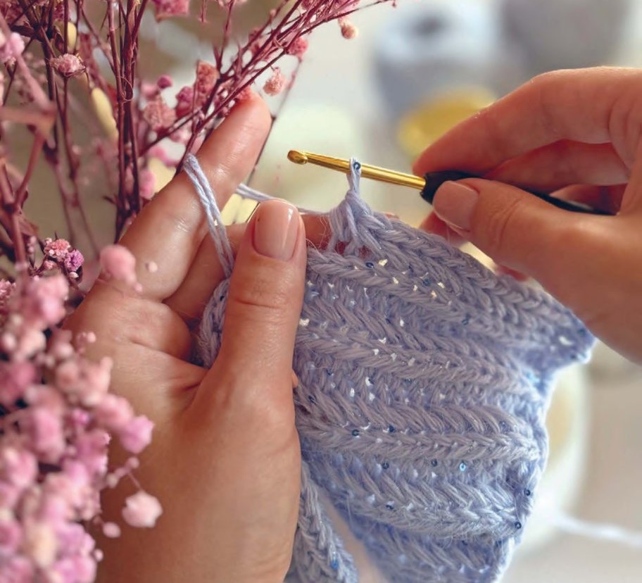 Поперечное вязание открывает новое измерение: петли располагаются не по привычной горизонтали, а вертикально, образуя изысканное, струящееся полотно, напоминающее созданное на спицах, но при этом сохраняющее все преимущества крючка.