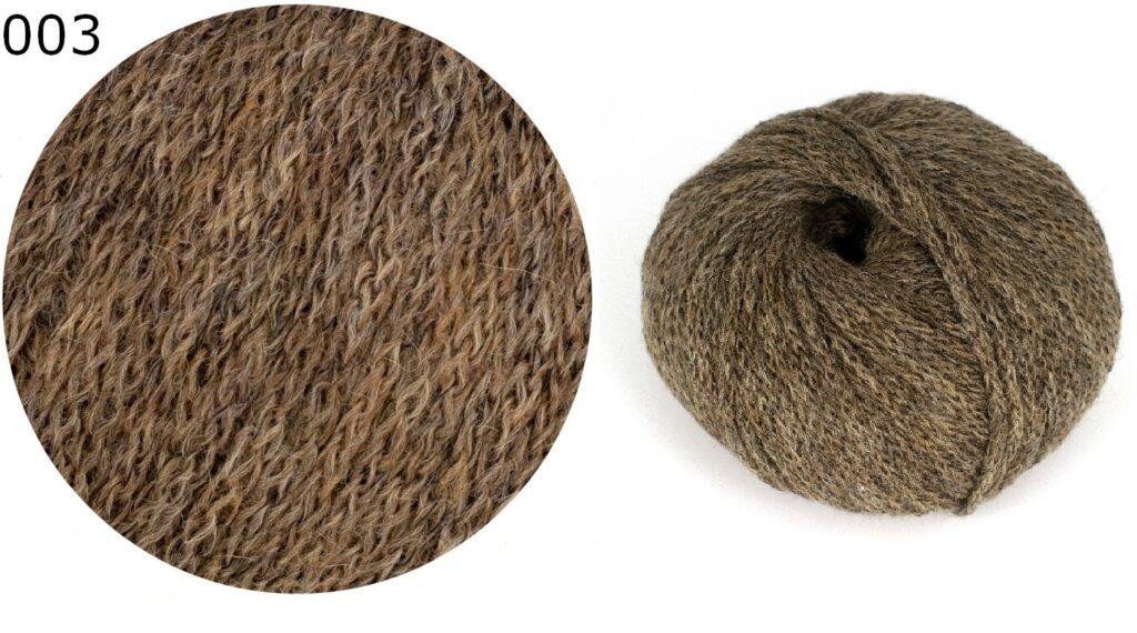 Для вязания нам потребуется 350 (350) 400 г коричневой (цвет № 0003) пряжи 1 ONLINE “Linie 516 Crema”: 56% шерсть альпака, 24% овечья шерсть, 20% полиамид; 140 м/50 г.