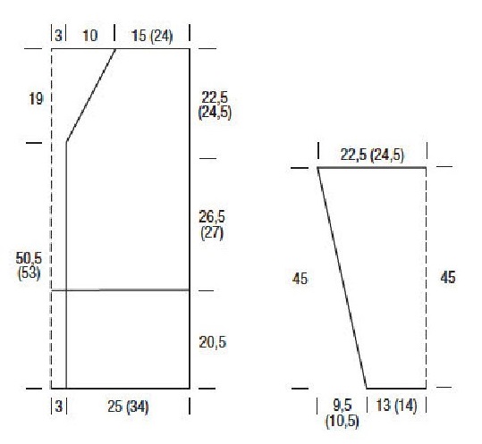 Для скосов с обеих сторон прибавить согласно узору в каждом 8-м р. 2 (0) раз и в каждом 6-м р. 12 (15) раз по 1 п. = 65 (71) п.